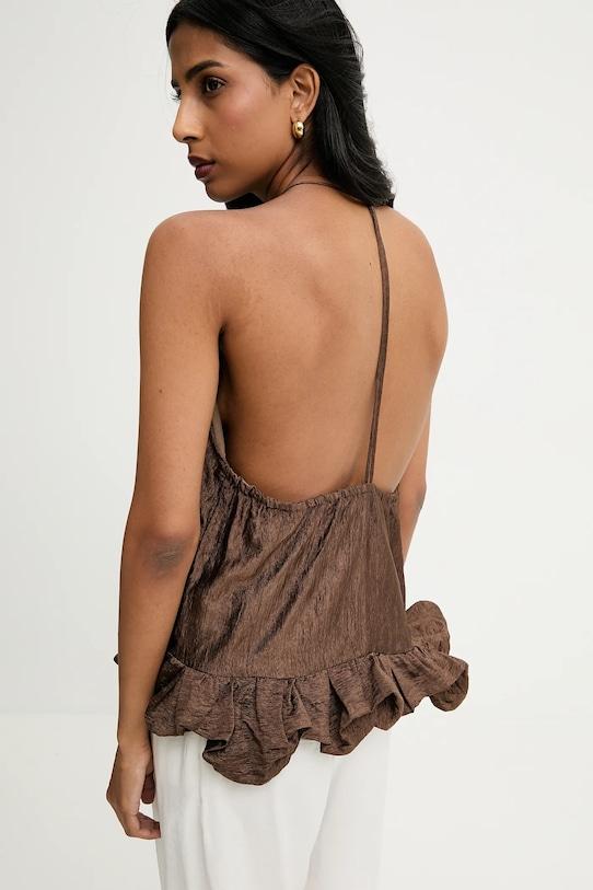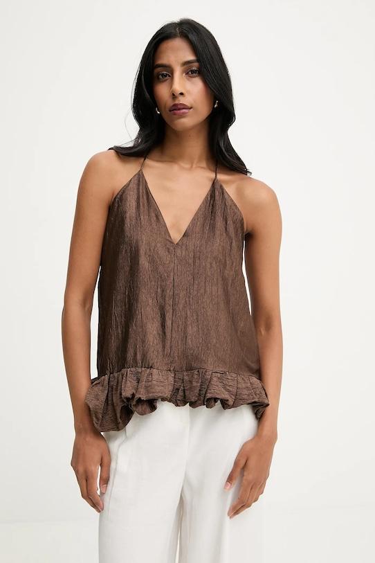 Эта блузка из коллекции Answear.LAB выполнена из тонкой неэластичной ткани. Содержание полиамида увеличивает износостойкость изделия. - Простой дизайн, не стесняющий движений. - Декоративный, заостренный вырез. - Нерегулируемые, несъемные лямки. - Модель с декоративной оборкой. - Эластичная вставка сзади. - Модель на подкладке. - Длина: 56 см. - Ширина под мышками: 42 см. - Указаны размеры: S/M.