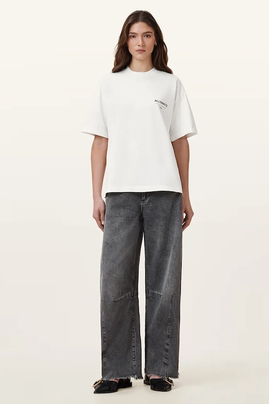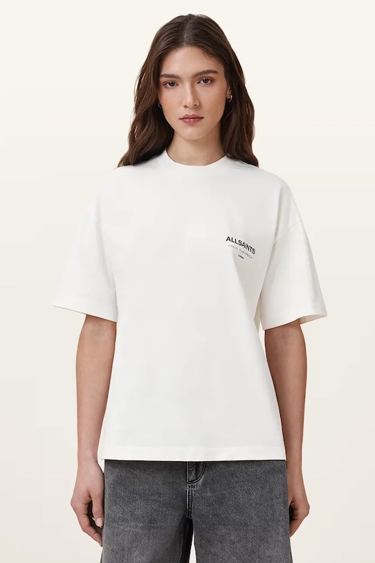 Эта футболка из коллекции AllSaints выполнена из тонкой эластичной ткани на основе дышащего хлопка. - Органический хлопок выращивается без использования вредных химикатов, химических пестицидов и искусственных удобрений. - Свободный крой, обеспечивающий полную свободу движений. - Классический круглый вырез. - Крой рукава со спущенной линией плеча не ограничивает подвижность. - Модель с принтом на груди и спине.