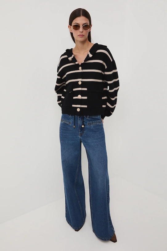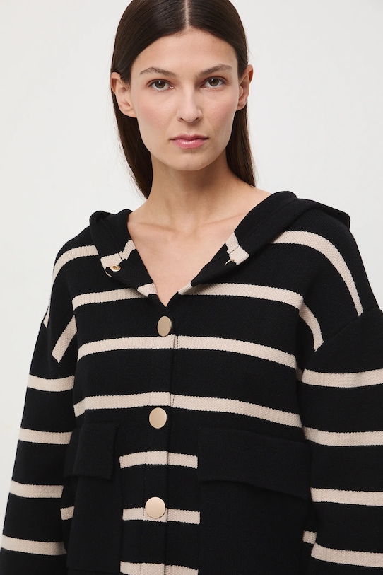 Кардиган из коллекции «Medicine». Модель с капюшоном, выполнена из узорчатого трикотажа. - Большой размер. - Длинный рукав. - Заниженная линия плеча. - Рукава отделаны ребристыми манжетами. - Модель с капюшоном. - Застежка-кнопка. - Два кармана с клапанами спереди. - Нижний край отделан завязками со стопорами, обеспечивающими индивидуальную посадку. - Гладкая трикотажная ткань. - Длина рукава (от капюшона): 73 см. - Узорчатое трикотажное полотно. - Полосатый рисунок. - Длина: 56,5 см. - Ширина груди: 59 см. - Размеры указаны для размера: S.