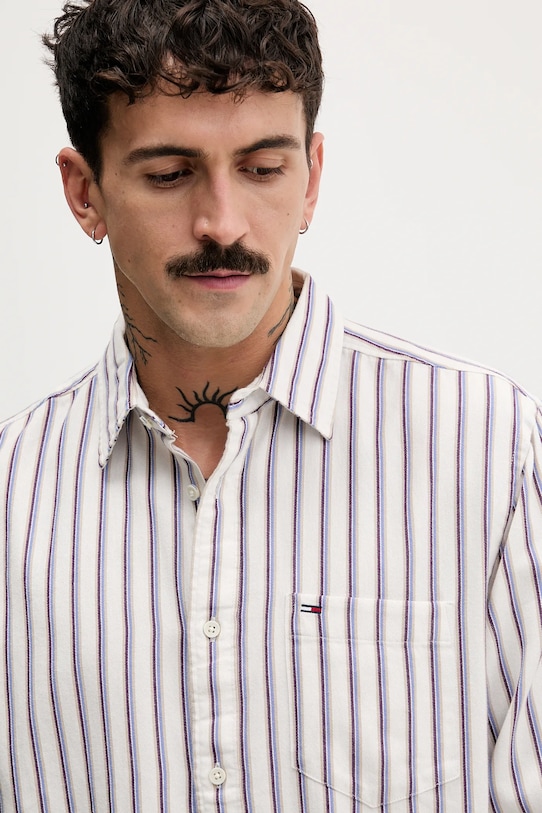 Эта рубашка Tommy Jeans выполнена из приятной на ощупь ткани. Эта модель выполнена из исключительно комфортного хлопкового материала. - Простой дизайн, не стесняющий движений. - Эта модель содержит регенерированные хлопковые волокна. Новые волокна и пряжа производятся из старых текстильных отходов и используются для производства новой одежды. - Удобная застежка на кнопки позволяет легко надевать и снимать. - Мягкий классический воротник «Кент». - Накладной карман на груди. - Манжеты на пуговицах. - Длина рукава: 66 см. - Длина: 74 см. - Ширина под мышками: 59 см. - Размеры указаны для размера: M.