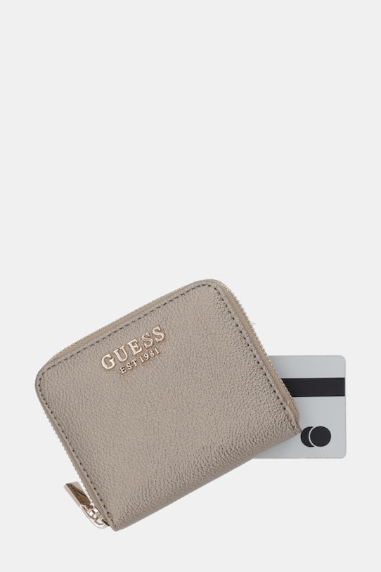 Небольшой кошелек из коллекции Guess. Изготовлен из экокожи и упакован в фирменную коробку.