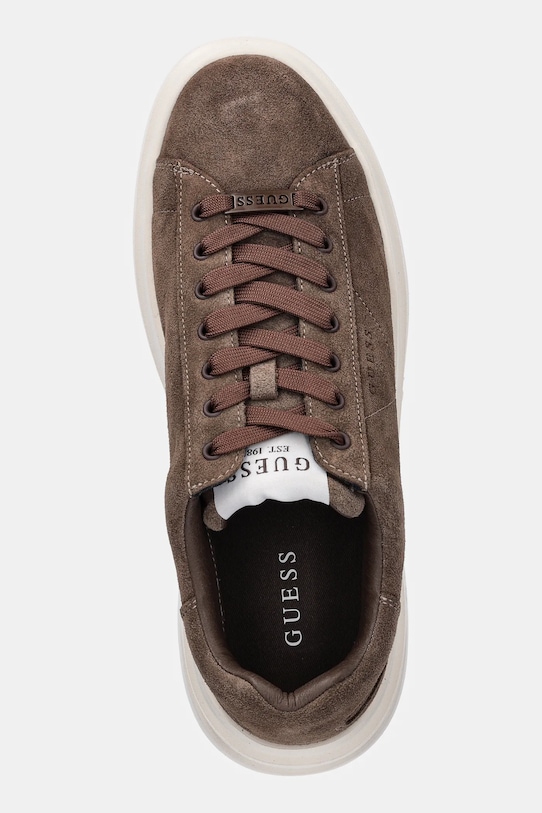 Кроссовки из коллекции Guess, изготовленные из замши. Лёгкие и удобные, эти кроссовки идеально подойдут для повседневной носки. - Зажатый нос. - Усиленный задник обеспечивает отличную поддержку лодыжки и пятки. - Классическая шнуровка позволяет индивидуально подогнать обувь по ноге. - Резиновая подошва прочная и устойчивая к повреждениям. - Съемная, легко чистящаяся текстильная вставка. - Длина вставки: 28,5 см. - Размеры указаны для размера: 43.