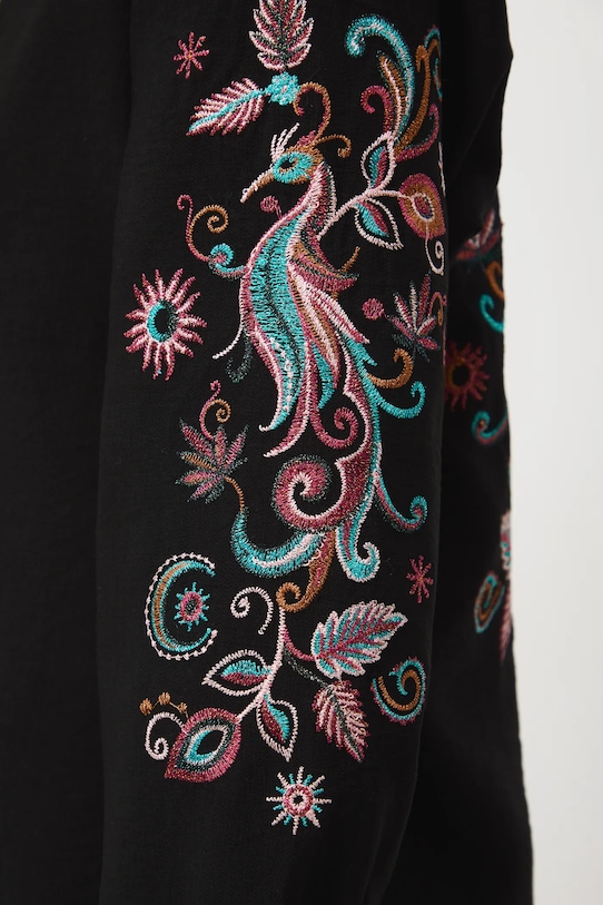 Рубашка из коллекции «Medicine». Изготовлена из ткани с декоративной вышивкой. - Обычная посадка. - Длинный рукав. - Манжеты на пуговицах. - Модель с воротником. - Застежка на пуговицы. - Модель с декоративной вышивкой. - Узор с растительными и животными мотивами. - Длина рукава: 58,5 см. - Длина: 73 см. - Ширина груди: 56 см. - Размеры указаны для размера: S.