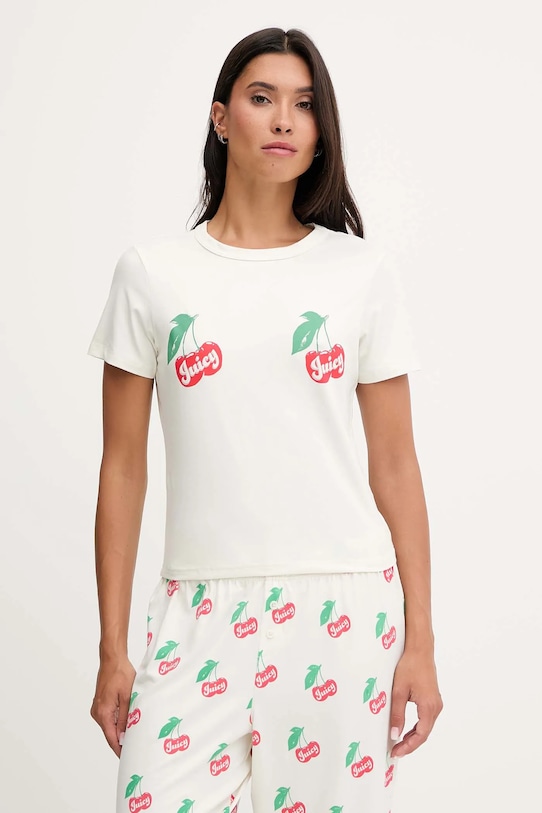 Этот пижамный комплект из футболки и брюк из коллекции Juicy Couture выполнен из узорчатого трикотажа и дополнен резинкой для волос. - Простой дизайн, не стесняющий движений. - Классический круглый вырез. - Короткий рукав. - Эластичный пояс предотвращает скольжение во время движения. - Тонкий, эластичный трикотаж. - Ширина талии: 41 см. - Высота талии: 34 см. - Длина по внутреннему шву: 80 см. - Длина: 49 см. - Ширина под мышками: 46 см. - Размеры указаны для размера: S.