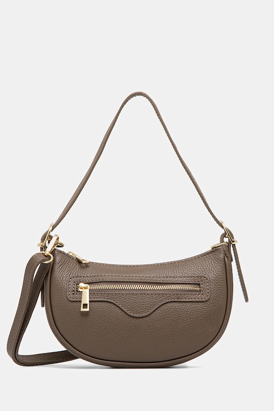 Небольшая сумочка из коллекции Answear.LAB. Модель на молнии, выполнена из натуральной кожи. - Застежка-молния. - Внутренний карман на молнии. - Карман на молнии на задней стороне позволяет безопасно хранить телефон или другие мелкие предметы. - Модель на подкладке. - Не подходит для формата А4. - Имеет регулируемую ручку и съемный нерегулируемый ремень. - Входящий в комплект тканевый чехол защищает изделие от пыли. - Глубина: 7 см. - Высота: 13,5 см. - Ширина у основания: 22,5 см.
