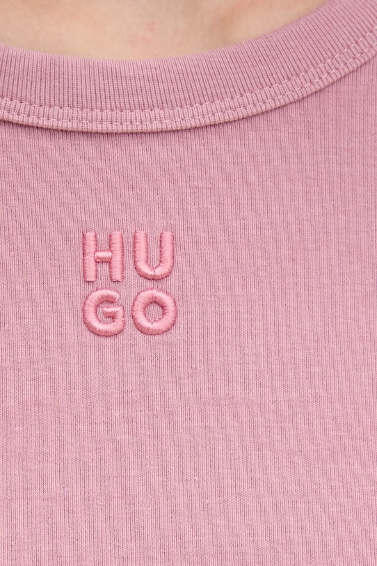 Эта футболка из коллекции HUGO выполнена из аппликационного трикотажа. Она изготовлена из исключительно комфортного материала с высоким содержанием хлопка. - Инициатива HUGO «Clean Up Your Act» – поддержка производства хлопка в Африке. Бренд поддерживает инициативу «Хлопок, сделанный в Африке» (CmiA), которая помогает мелким фермерам в Африке совершенствовать свои навыки в сельском хозяйстве и сохранять природные ресурсы, а также способствует устойчивому развитию (без использования генетически модифицированных семян и вырубки первичных лесов). - Приталенный крой. - Классический круглый вырез. - Тонкий, эластичный трикотаж. - Длина: 45 см. - Ширина под мышками: 38 см. - Размеры указаны для размера: S.