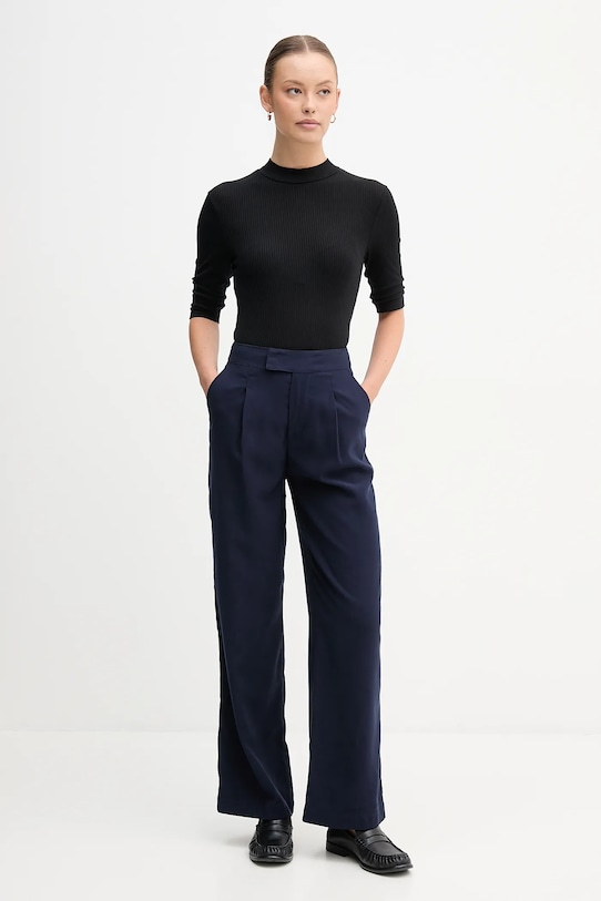 Брюки из коллекции United Colors of Benetton из тонкой, слегка эластичной ткани. Модель выполнена из исключительно комфортного материала с высоким содержанием вискозы. - Брюки свободные в области бедер и ягодиц. - Прямая нога полной длины. - Модель с высокой талией, застежкой на молнию, пуговицы и крючок. - Два боковых накладных кармана. - Имитация карманов на ягодицах. - Ширина талии: 34 см. - Ширина бедер: 50 см. - Высота талии: 32 см. - Ширина штанины внизу: 26 см. - Ширина штанины: 28,5 см. - Длина внешней части штанины: 103 см. - Размеры указаны для размера: 34.