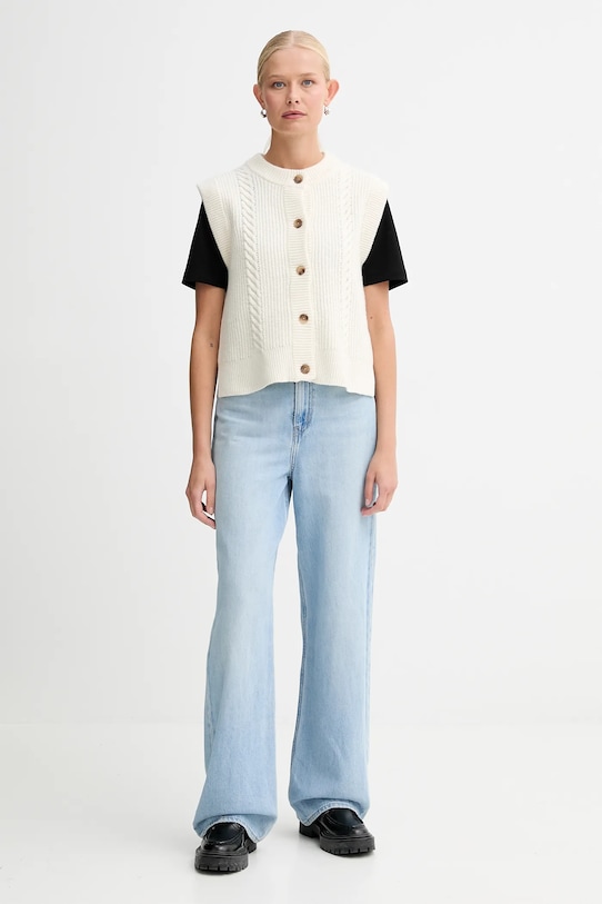 - Простой дизайн, не стесняющий движений. - Удобная застежка на пуговицы. - Привлекающее внимание плетение. - Нижний край отделан удобной эластичной манжетой. - Длина: 53 см. - Ширина под мышками: 40 см. - Размеры указаны для размера: S.