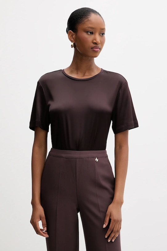 Футболка из коллекции Silvian Heach выполнена из тонкой, слегка эластичной ткани. Модель выполнена из исключительно комфортного материала с высоким содержанием вискозы. - Простой дизайн, не стесняющий движений. - Классический круглый вырез. - Гладкая трикотажная ткань. - Длина: 64 см. - Ширина под мышками: 48 см. - Размеры указаны для размера: 36.