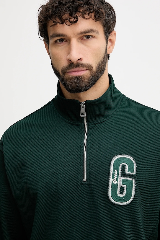 Эта толстовка из коллекции Guess выполнена из слегка эластичного трикотажа. Содержание полиэстера делает материал менее мнущимся. - Содержит переработанный пластик. - Свободный крой, обеспечивающий полную свободу движений. - Поднятый воротник обеспечивает дополнительную защиту от холода. - Короткая застежка-молния обеспечивает эффективную вентиляцию и легкость надевания и снимания. - Крой рукава со спущенной линией плеча не ограничивает подвижность. - Рукава и низ изделия отделаны манжетами для защиты от неблагоприятных погодных условий. - Два боковых накладных кармана. - Нашивка с логотипом спереди. - Длина рукава (от воротника): 83 см. - Длина: 72 см. - Ширина под мышками: 62 см. - Размеры указаны для размера: M.
