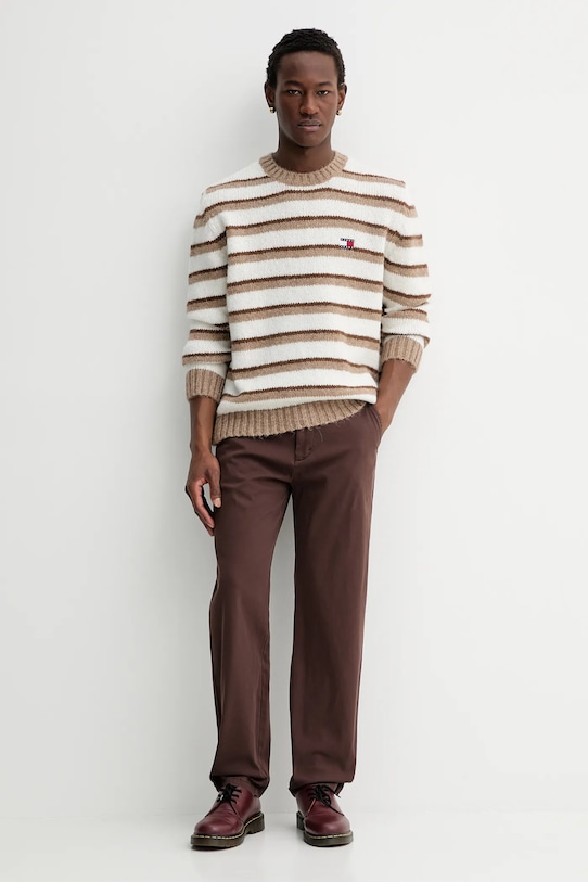 Брюки из коллекции Tommy Jeans, выполненные из тонкой, слегка эластичной ткани. Эта модель выполнена из исключительно комфортного материала с высоким содержанием хлопка. - Брюки свободные в области бедер и ягодиц. - Прямая нога полной длины. - Модель со стандартной талией, застежкой на пуговицы и молнию. - Три накладных кармана спереди. - Два накладных кармана на ягодицах. - Ширина талии: 43 см. - Ширина бедер: 56 см. - Высота талии: 31,5 см. - Ширина штанины внизу: 19 см. - Ширина штанины: 31,5 см. - Длина внешнего шва: 105 см. - Размеры указаны для размера: 31/32.