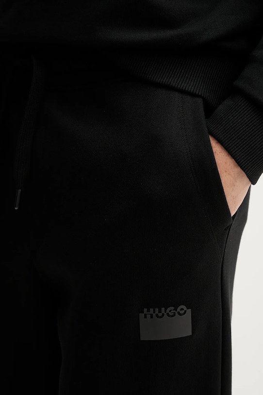 Эти спортивные брюки из коллекции HUGO изготовлены из эластичной ткани, обеспечивающей комфорт и свободу движений. Они изготовлены из дышащего хлопка. - Брюки свободные в области бедер и ягодиц. - Эластичный пояс и дополнительная регулировка ширины с помощью шнурков для предотвращения сползания во время движения. - Крой с зауженными брючинами, не стесняющими движений. - Два боковых накладных кармана. - Накладной карман на задней стороне позволяет легко и безопасно хранить телефон или другие мелкие предметы. - Графический логотип бренда спереди. - Ширина талии: 42 см. - Ширина бедер: 55 см. - Высота талии: 32 см. - Ширина штанины внизу: 22 см. - Ширина штанины: 33 см. - Длина внешнего шва: 110 см. - Размеры указаны для размера: M.