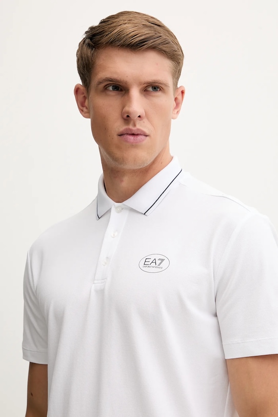 Эта рубашка-поло из коллекции EA7 Emporio Armani выполнена из слегка эластичного трикотажа. Модель выполнена из исключительно комфортного материала с высоким содержанием хлопка. - Обычная посадка. - Мягкий воротник и короткая планка с пуговицами. - Тонкий, слегка эластичный трикотаж. - Длина: 68 см. - Ширина под мышками: 56 см. - Размеры указаны для размера: M.