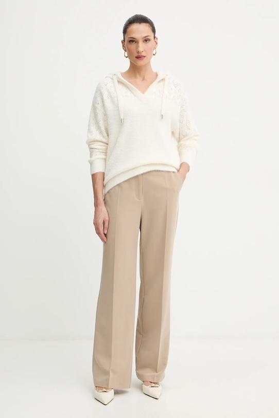 Этот свитер из коллекции Morgan выполнен из тонкого, эластичного трикотажа. Он мягкий и приятный на ощупь. - Свободный крой, обеспечивающий полную свободу движений. - Длинный рукав. - Крой рукава со спущенной линией плеча не ограничивает подвижность. - Декоративный, заостренный вырез. - Капюшон с завязками обеспечивает дополнительное тепло и защиту при необходимости. - Рукава и нижний край отделаны удобными эластичными манжетами. - Длина рукава (от капюшона): 77 см. - Длина: 62 см. - Ширина под мышками: 56 см. - Размеры указаны для размера: S.