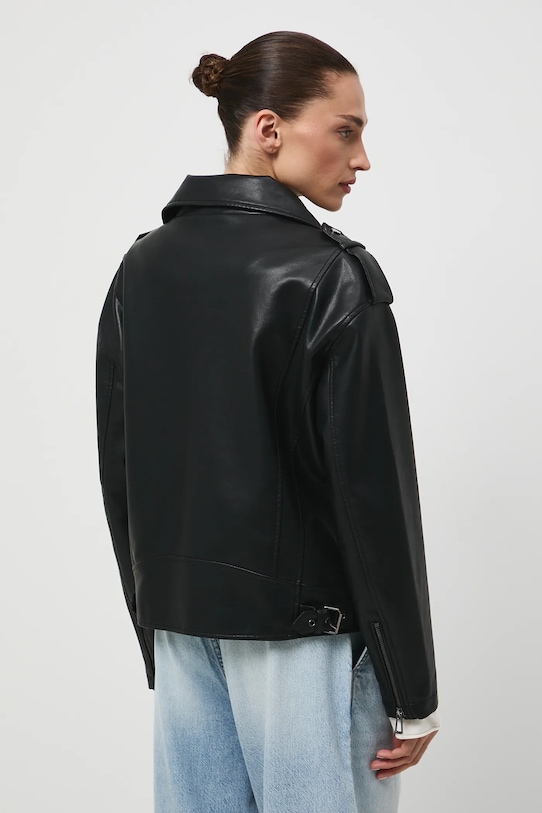 Куртка-косуха из коллекции Medicine. Модель без подкладки выполнена из экокожи. - Большой размер. - Длинный рукав. - Заниженная линия плеча. - Молнии по низу рукавов. - Застежка-молния. - Два прорезных боковых кармана на молнии. - Регулировка ширины снизу с помощью ремней позволяет индивидуально подогнать по фигуре. - Неутепленная модель с подкладкой. - Длина рукава (от воротника): 74,5 см. - Длина: 61,5 см. - Ширина груди: 55 см. - Ширина плеч: 53 см. - Размеры указаны для размера: S.