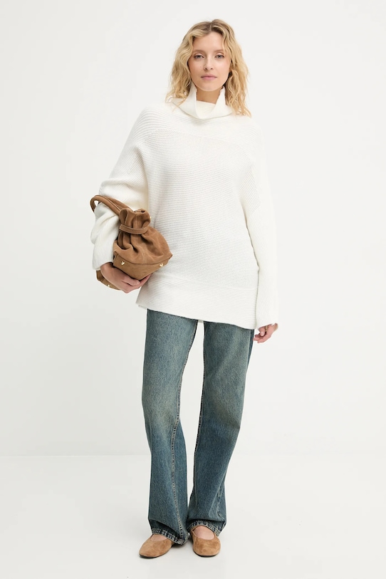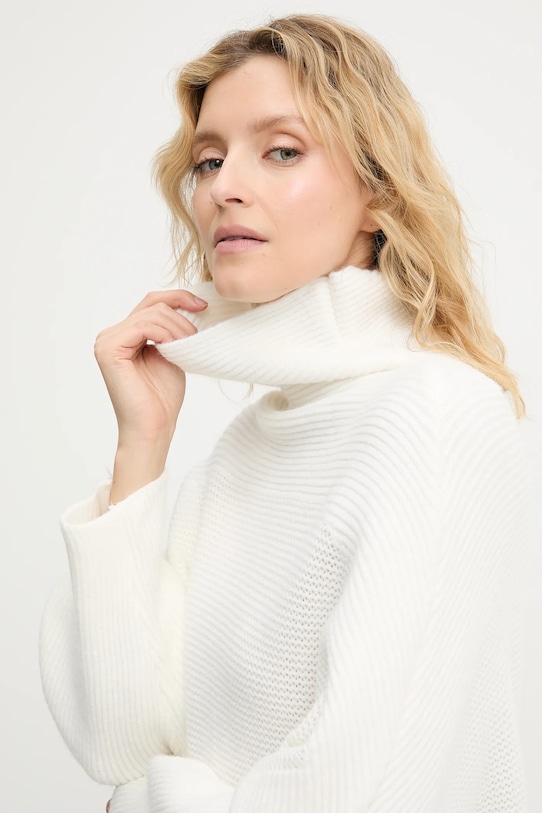 Этот свитер из коллекции Answear.LAB выполнен из трикотажного полотна с добавлением кашемира. Кашемировая шерсть обладает отличными терморегулирующими свойствами, отличается исключительной лёгкостью и пушистостью. - Свободный крой, обеспечивающий полную свободу движений. - Длинные рукава кимоно. - Модель с высоким воротом. - Длина рукава (от воротника): 71 см. - Длина: 77 см. - Ширина под мышками: 67 см. - Размеры указаны для размера: S.