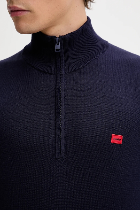 Свитер из коллекции HUGO. Модель с воротником-стойкой, выполненная из гладкого трикотажа. Исключительно комфортный материал. - Инициатива «Clean Up Your Act» - поддержка более устойчивых способов производства, которые снижают негативное воздействие на планету. - Простой дизайн. - Модель с водолазкой. - Застежка на короткую молнию. - Длинный рукав. - Отделка ребер. - Тонкий, эластичный трикотаж. - Длина рукава: 73 см. - Длина: 72 см. - Ширина под мышками: 54 см. - Размеры указаны для размера: M.