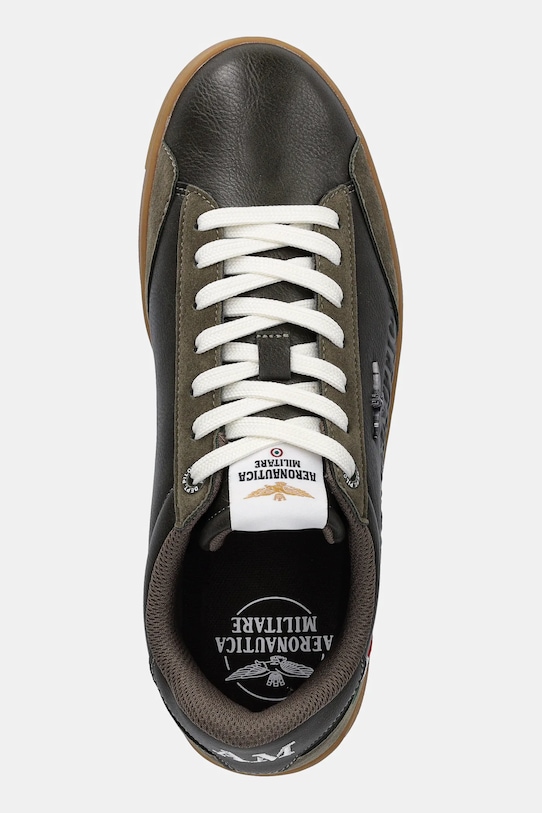 Эти кроссовки из коллекции Aeronautica Militare изготовлены из комбинации искусственной кожи и замши. Они лёгкие и удобные, идеально подходят для повседневной носки. - Круглый, слегка утолщенный носок. - Жесткий задник стабилизирует пятку и удерживает ногу в обуви, не давая ей выскальзывать во время движения. - Плоские шнурки устраняют давление на подъем стопы, обеспечивая хорошую посадку и комфорт. - Текстильная внутренняя часть комфортна для ног и облегчает содержание обуви в чистоте. - Съемная стелька анатомической формы поддерживает свод стопы и обеспечивает длительный комфорт. - Резиновая подошва прочная и устойчивая к повреждениям. - Длина вставки: 27,5 см. - Размеры указаны для размера: 43.