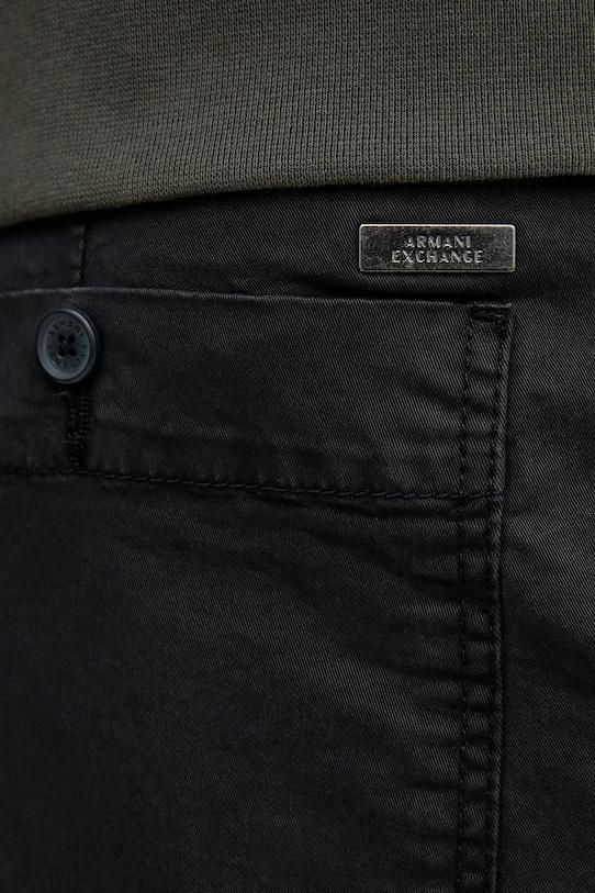 Брюки из коллекции Armani Exchange, выполненные из тонкой, слегка эластичной ткани. Эта модель отличается исключительно комфортным материалом с высоким содержанием хлопка. - Брюки слегка приталенные на бедрах. - Ножки отделаны удобными эластичными манжетами. - Модель со стандартной талией, застежкой на пуговицы и молнию. - Два боковых накладных кармана. - Два кармана на пуговицах на ягодицах. - Ширина талии: 43 см. - Ширина бедер: 54 см. - Высота талии: 29,5 см. - Ширина штанины внизу: 15 см. - Ширина штанины: 33,5 см. - Длина внешнего шва: 100 см. - Размеры указаны для размера: 32.