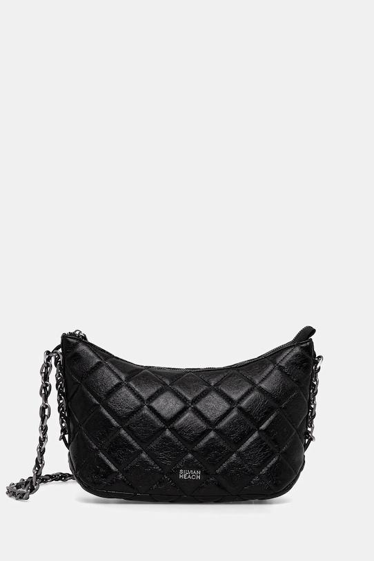 Небольшая сумочка из коллекции Silvian Heach. Модель на молнии, выполнена из экокожи. - Застежка-молния. - Модель на подкладке. - Не подходит для формата А4. - Имеет два внутренних кармана: один прорезной, другой на молнии. - Сумка для ношения в руке или на плече. - Ремешок длинный, несъемный, нерегулируемый. - Входящий в комплект тканевый чехол защищает изделие от пыли. - Длина ремешка: 123 см. - Глубина: 9 см. - Высота: 17 см. - Ширина у основания: 30 см.