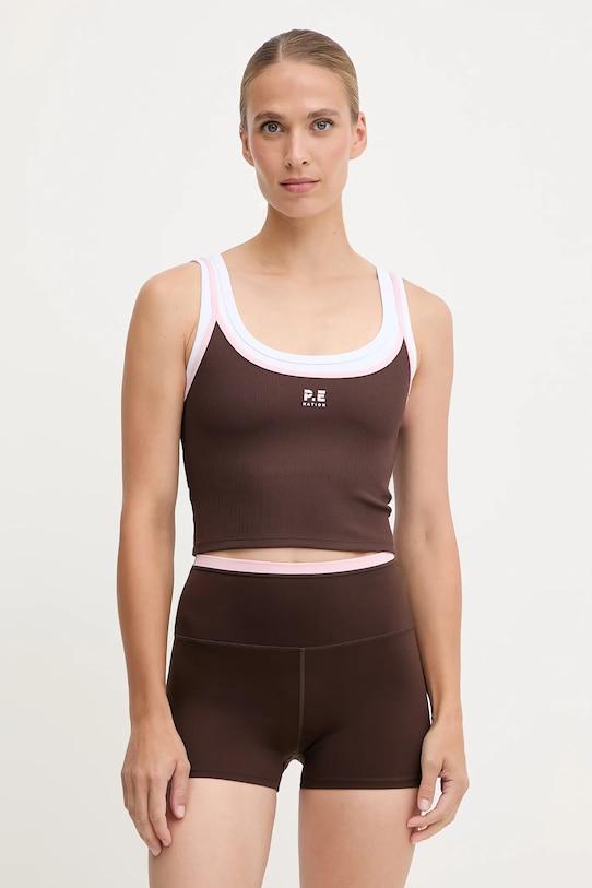Топ из коллекции P. E Nation. Изготовлен из эластичного ребристого материала. - Изделие содержит переработанные волокнистые материалы. - Модель выполнена из трикотажного полотна в рубчик, которое отличается особой эластичностью и мягкостью, благодаря чему хорошо облегает тело и обеспечивает комфорт при носке. - Нерегулируемые лямки не соскальзывают с плеч, обеспечивая комфорт во время занятий. - Плоские швы защищают кожу от натирания и раздражения и обеспечивают высокий уровень комфорта во время занятий спортом. - Ширина под мышками: 42 см. - Длина: 35 см. - Размеры указаны для размера: S.
