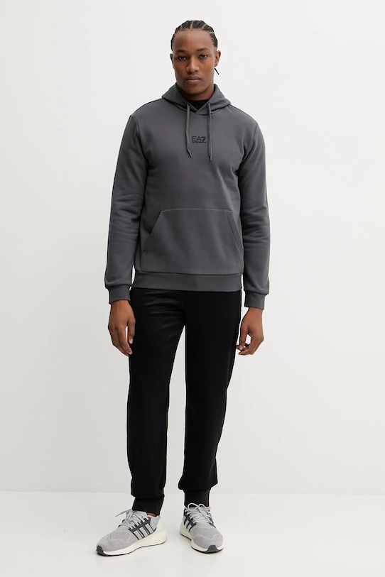Эта толстовка с капюшоном из коллекции EA7 Emporio Armani выполнена из трикотажного полотна. Она изготовлена из исключительно комфортного материала с высоким содержанием хлопка. - Простой дизайн, не стесняющий движений. - Внутренняя сторона из ворсованной ткани обеспечивает мягкость и дополнительное тепло. - Капюшон с завязками. - Практичный вставной карман-кенгуру спереди. - Плотная, эластичная трикотажная ткань. - Рукава и низ изделия отделаны манжетами для защиты от неблагоприятных погодных условий. - Длина рукава: 65 см. - Длина: 68 см. - Ширина под мышками: 55 см. - Размеры указаны для размера: M.