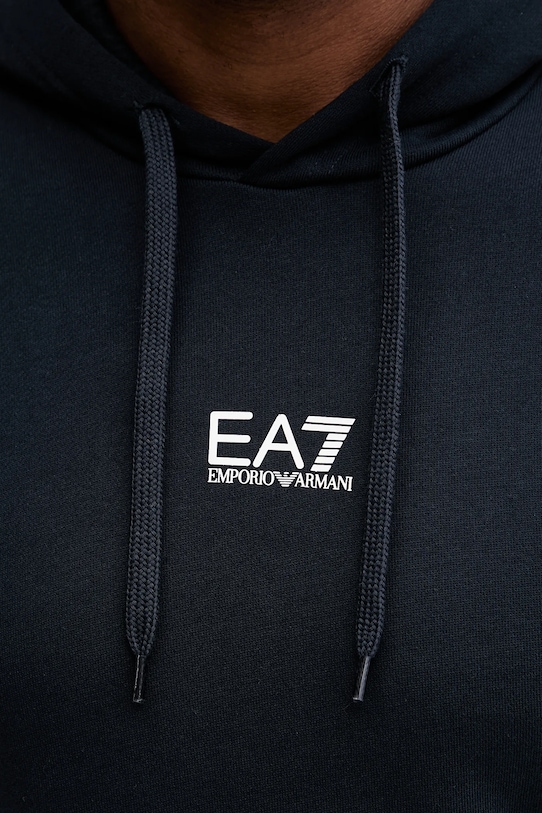 Эта толстовка с капюшоном из коллекции EA7 Emporio Armani выполнена из трикотажного полотна. Она изготовлена из исключительно комфортного материала с высоким содержанием хлопка. - Простой дизайн, не стесняющий движений. - Внутренняя сторона из ворсованной ткани обеспечивает мягкость и дополнительное тепло. - Капюшон с завязками. - Практичный вставной карман-кенгуру спереди. - Плотная, эластичная трикотажная ткань. - Рукава и низ изделия отделаны манжетами для защиты от неблагоприятных погодных условий. - Длина рукава: 65 см. - Длина: 68 см. - Ширина под мышками: 55 см. - Размеры указаны для размера: M.