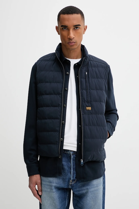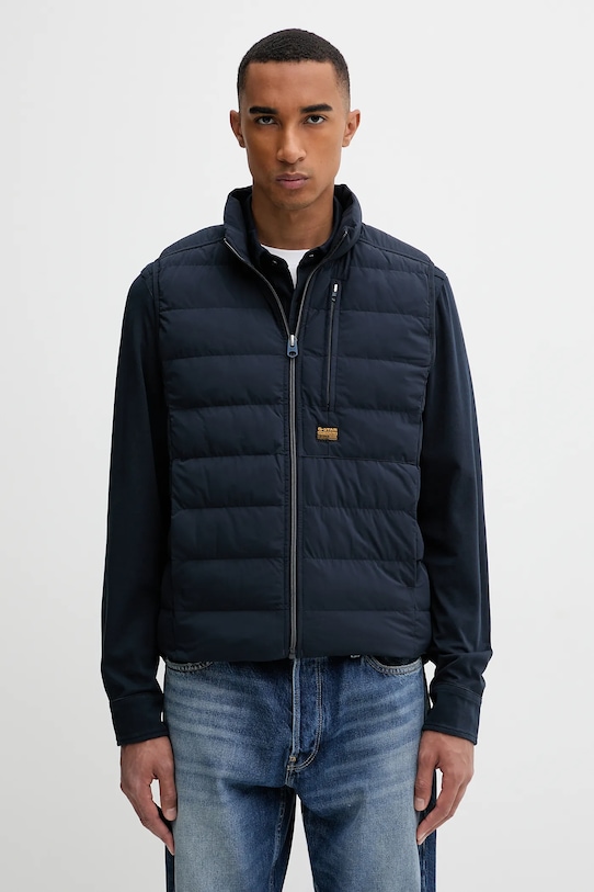 Жилет из коллекции G-Star Raw. Изделие с лёгкой подкладкой изготовлено из гладкой ткани. Стёганый и с подкладкой из синтетического утеплителя для дополнительного комфорта в прохладную погоду. - Изготовлено из запатентованного эковолокна DuPont Sorona, полученного из возобновляемых ресурсов. Исключительно удобное и лёгкое. - Данное изделие частично изготовлено из переработанного полиэстера. - Модель с повышенной водонепроницаемостью. Водостойкость означает повышенную устойчивость к воздействию воды. Изделие сохраняет свои свойства при контакте с водой, что обеспечивает больший комфорт благодаря более низкому порогу водопроницаемости, но не гарантирует полной водонепроницаемости. - Простой дизайн, не стесняющий движений. - Поднятый воротник. - Застежка-молния. - Внешние карманы на молнии. - Длина: 65 см. - Ширина под мышками: 51 см. - Размеры указаны для размера: M.