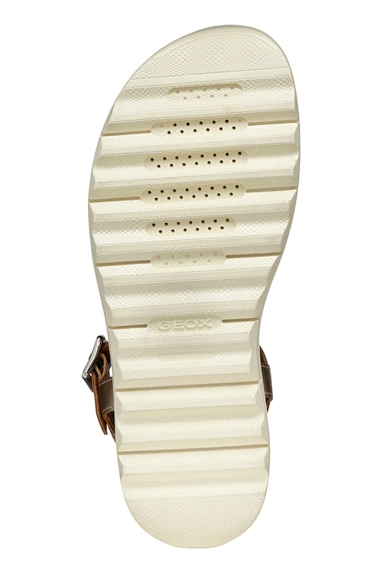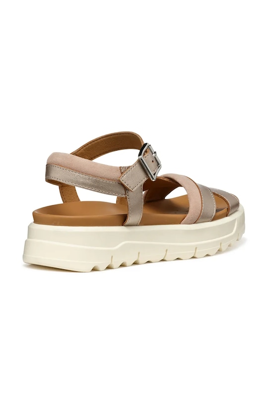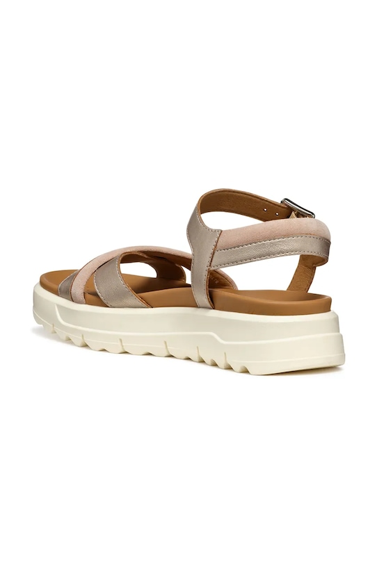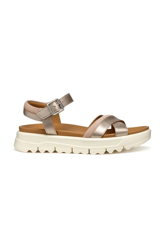 Сандалии из коллекции Geox. Модель изготовлена из комбинации синтетического материала и замши. Кожаная стелька обеспечивает комфорт и предотвращает натирание, потертости и появление неприятного запаха. - Geox Respira System: в них реализована технология Geox Respira, которая благодаря трехслойной подошве с дышащей системой перфорации улучшает вентиляцию, тем самым заботясь о здоровье ваших ног и обеспечивая комфорт при использовании обуви. - Гладкий материал. - Застежка-пряжка со штифтом для индивидуальной подгонки. - Стелька Geox: перфорированная кожаная стелька улучшает циркуляцию воздуха внутри обуви. Она обладает антибактериальными и дышащими свойствами. Благодаря системе Anti-Shock она обеспечивает оптимальную амортизацию и комфорт. Стелька имеет анатомическую форму для правильного положения стопы. - Платформенная модель. - Рифленая подошва.