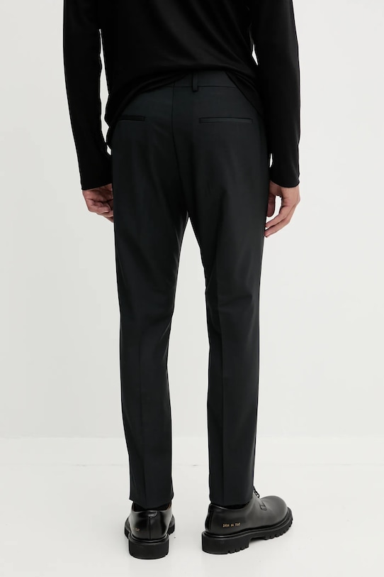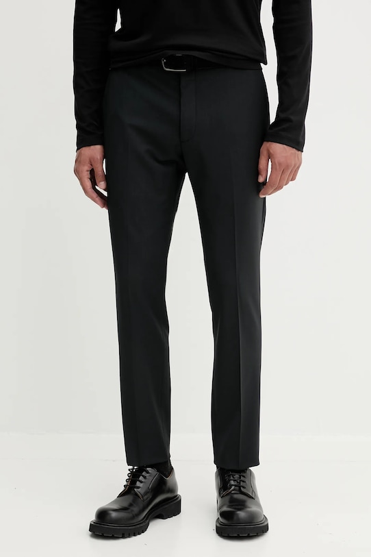 Брюки из коллекции Calvin Klein из ткани. Шерсть обладает естественными дышащими и терморегулирующими свойствами. - Модель со стандартной талией, застегивающаяся на молнию, пуговицы и крючок. - Два боковых накладных кармана. - Два накладных кармана на ягодицах. - Ножки отутюжены до складок. - Ширина талии: 44 см. - Ширина бедер: 51 см. - Высота талии: 28 см. - Ширина штанины: 32 см. - Ширина штанины внизу: 17 см. - Длина по внутреннему шву: 78 см. - Размеры указаны для размера: 50.