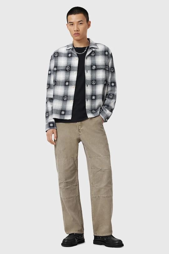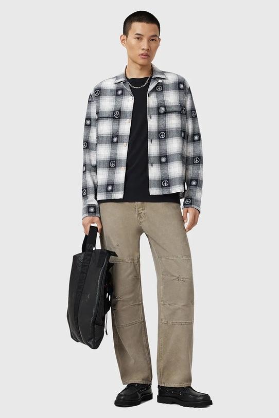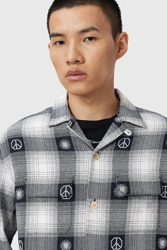 Эта футболка AllSaints сшита из ткани с узором. Она изготовлена из дышащего хлопка. - Органический хлопок выращивается без использования вредных химикатов, химических пестицидов и искусственных удобрений. - Большой размер. - Длинный рукав. - Крой рукава со спущенной линией плеча не ограничивает подвижность. - Мягкий воротник-боулинг. - Манжеты на пуговицах. - Застежка на пуговицы.