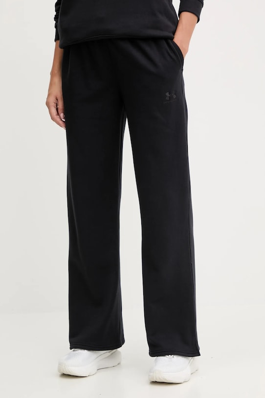 Эти спортивные брюки из коллекции Under Armour изготовлены из слегка эластичной ткани. Мягкая внутренняя подкладка обеспечивает высокий комфорт. - Эластичный пояс и дополнительная регулировка ширины с помощью шнурков для предотвращения сползания во время движения. - Два боковых накладных кармана. - Мягкая внутренняя отделка обеспечивает высокий комфорт использования и оптимальный тепловой комфорт. - Прямые, широкие штанины. - Логотип бренда вышит спереди. - Ширина талии: 36 см. - Ширина бедер: 49 см. - Высота талии: 31 см. - Ширина штанины: 31 см. - Ширина штанины внизу: 26 см. - Длина по внутреннему шву: 75 см.