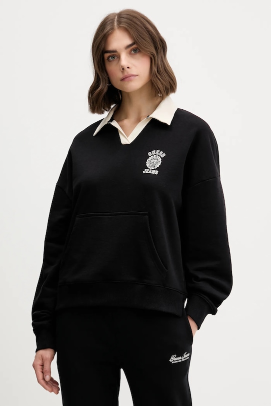 Эта толстовка из коллекции Guess Jeans выполнена из принтованного трикотажа. Она изготовлена из исключительно комфортного хлопкового материала. - Модель изготовлена из волокон, полученных с использованием экологически безопасных производственных процессов, что позволяет снизить воздействие на окружающую среду. - Свободный крой, обеспечивающий полную свободу движений. - Крой рукава со спущенной линией плеча не ограничивает подвижность. - Рукава и низ изделия отделаны удобными эластичными манжетами. - Модель с воротником. - Длина рукава (от воротника): 79 см. - Длина: 60 см. - Ширина под мышками: 60 см. - Размеры указаны для размера: S.