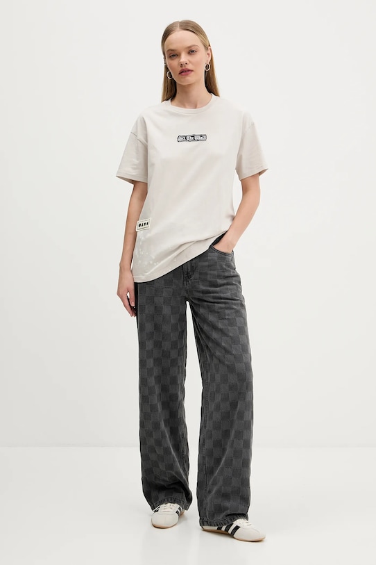 Эти джинсы свободного кроя с высокой талией из коллекции Vans выполнены из неэластичного денима. - Модель с высокой талией, застежкой на пуговицы и молнию. - Три накладных кармана спереди. - Два накладных кармана на ягодицах. - Ширина талии: 38 см. - Ширина бедер: 50 см. - Высота талии: 31 см. - Ширина штанины внизу: 24 см. - Ширина штанины: 31 см. - Длина по внутреннему шву: 79 см. - Размеры указаны для размера: 27.