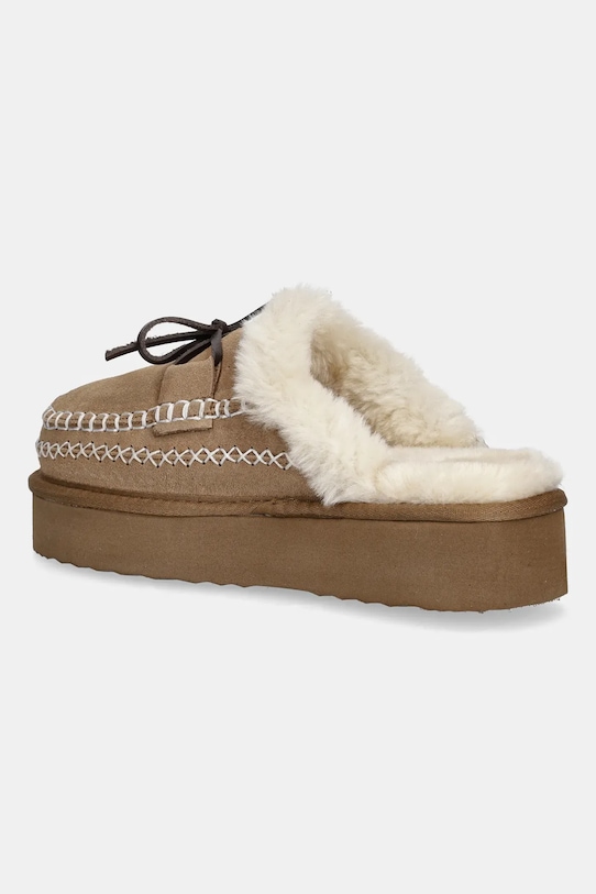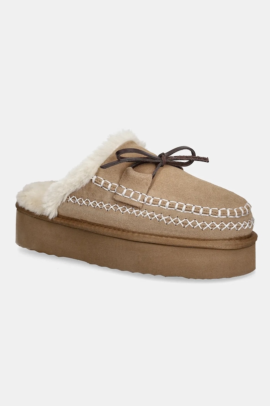 Тапочки из коллекции Answear.LAB, изготовленные из замши. Мягкая текстильная подкладка обеспечивает исключительный комфорт. - Платформенная модель. - Круглый, мягкий нос. - Подошва из пеноматериала обеспечивает более мягкое ощущение и дополнительную амортизацию. - Изолированная модель. - Высота платформы: 4 см. - Длина вставки: 23 см. - Размеры указаны для размера: 37.