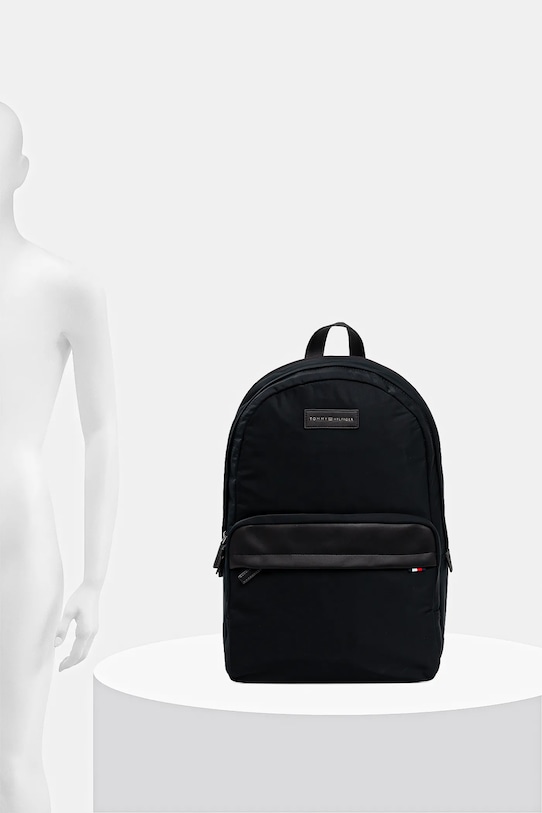 Рюкзак из коллекции Tommy Hilfiger. Изготовлен из комбинации текстиля и экокожи. - Изделие содержит переработанные волокнистые материалы. - Двухкамерная модель. - Передний карман. - Рукоятка. - Регулируемая длина ремня. - Рюкзак оснащен ремнем для крепления к ручке чемодана. - Вмещает формат А4. - Имеет отделение для ноутбука или планшета. - Внутренний карман на молнии. - Количество внутренних накладных карманов: 3. - Глубина: 13 см. - Высота: 45 см. - Ширина у основания: 30 см.