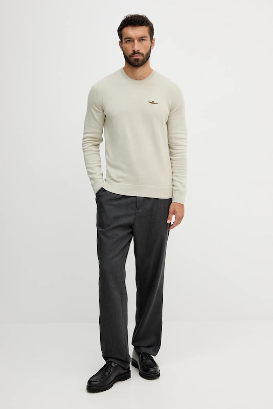 Этот свитер из коллекции Aeronautica Militare выполнен из эластичного трикотажа. Модель выполнена из исключительно комфортного хлопкового материала. - Простой дизайн, не стесняющий движений. - Классический круглый вырез. - Рукава и нижний край отделаны удобными эластичными манжетами. - Вышитый логотип бренда на груди. - Тонкий, эластичный трикотаж. - Длина рукава: 70,5 см. - Длина: 69 см. - Ширина под мышками: 56 см. - Размеры указаны для размера: M.