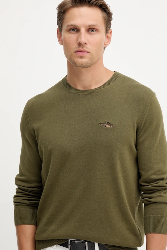 Этот свитер из коллекции Aeronautica Militare выполнен из эластичного трикотажа. Модель выполнена из исключительно комфортного хлопкового материала. - Простой дизайн, не стесняющий движений. - Классический круглый вырез. - Рукава и нижний край отделаны удобными эластичными манжетами. - Вышитый логотип бренда на груди. - Тонкий, эластичный трикотаж. - Длина рукава: 70,5 см. - Длина: 69 см. - Ширина под мышками: 56 см. - Размеры указаны для размера: M.