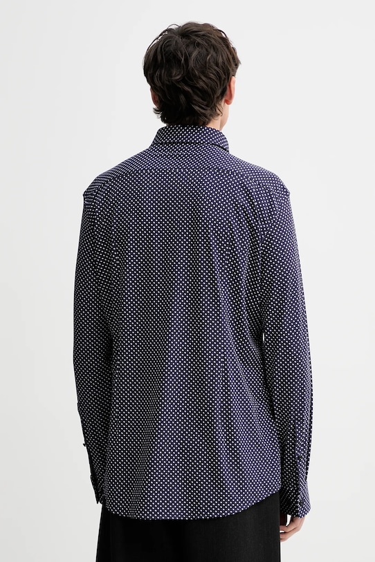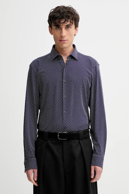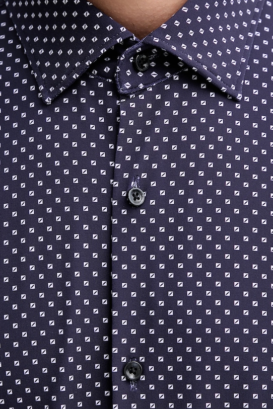 Эта рубашка HUGO сшита из тонкого, высокоэластичного трикотажа. Она мягкая и приятная на ощупь. - Приталенная рубашка облегает тело, естественно подчеркивая силуэт и обеспечивая комфорт. - Длинный рукав. - Классический жесткий воротник «Кент». - Удобная застежка на кнопки позволяет легко надевать и снимать. - Усиленные манжеты с двумя пуговицами позволяют индивидуально подогнать посадку. - Окружность воротника: 41 см. - Длина рукава: 66 см. - Длина: 76 см. - Ширина под мышками: 59 см. - Ширина плеч: 46 см. - Размеры указаны для размера: 41.
