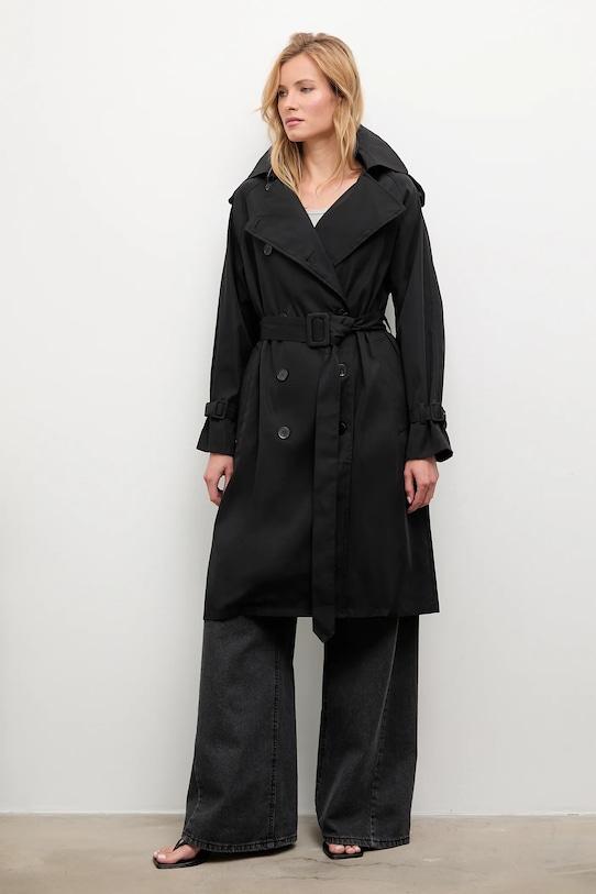 Тренч из коллекции Answear.LAB. Эта модель без подкладки выполнена из гладкой ткани. - Простой дизайн, не стесняющий движений. - Рукава реглан благодаря своей конструкции обеспечивают большую свободу движений. - Двубортный пиджак с застежкой на пуговицы. - Модель с воротником. - Внешние накладные карманы. - Пояс на талии корректирует фигуру и еще больше подчеркивает талию. - Погоны на плечах. - Неутепленная модель с подкладкой. - Длина рукава (от воротника): 75 см. - Длина: 106 см. - Ширина под мышками: 56 см. - Указаны размеры: S/M.
