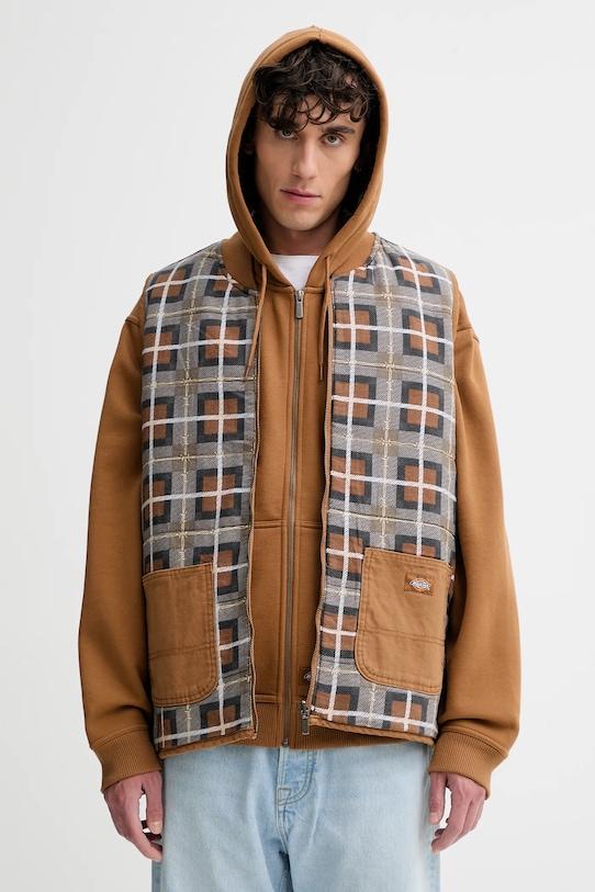 Жилет из коллекции Dickies. Эта модель с лёгким утеплителем выполнена из жёсткого, сохраняющего форму материала. Модель выполнена из исключительно комфортной, дышащей хлопковой ткани. - Простой дизайн, не стесняющий движений. - Дополнительный слой материала в виде подкладки увеличивает покрытие и обеспечивает дополнительный комфорт во время активности. - Воротник-бомбер. - Двусторонняя застежка-молния обеспечивает быструю вентиляцию. - Два накладных кармана спереди для удобного хранения мелких предметов. - Дополнительные внутренние карманы позволяют безопасно хранить мелкие предметы. - Длина: 75 см. - Ширина под мышками: 62 см. - Размеры указаны для размера: L.