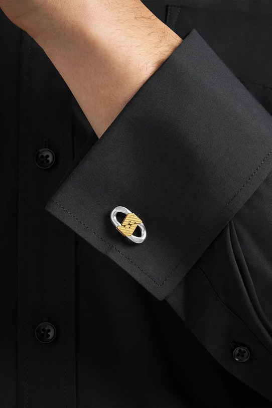 Запонки из коллекции Emporio Armani. Эта модель украшена декоративными элементами и изготовлена ​​из нержавеющей стали.