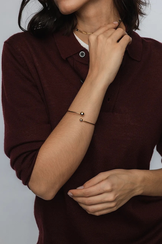 Браслет из коллекции ANIA KRUK. Модель украшена декоративными элементами и изготовлена ​​из серебра 925 пробы, покрытого 24-каратным золотом.