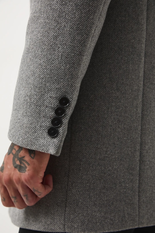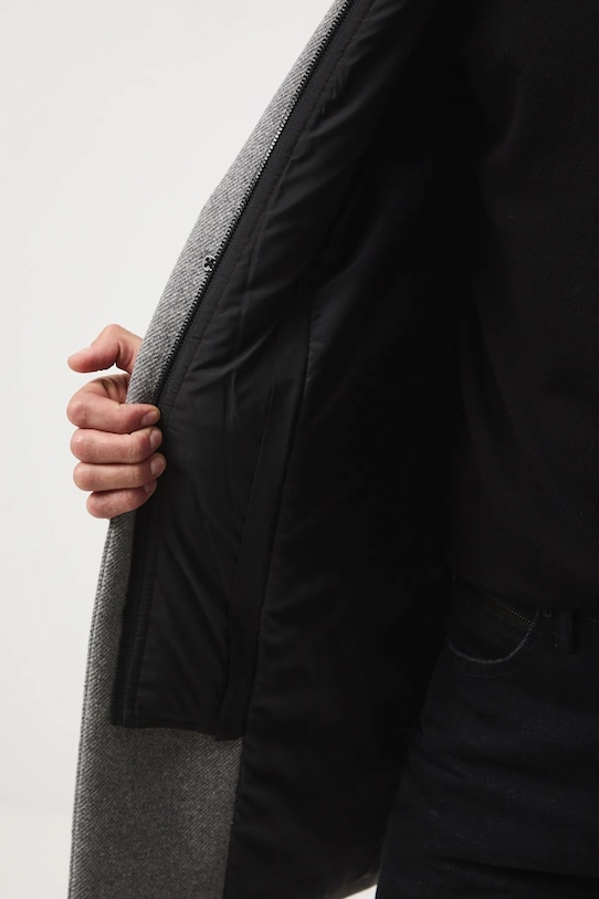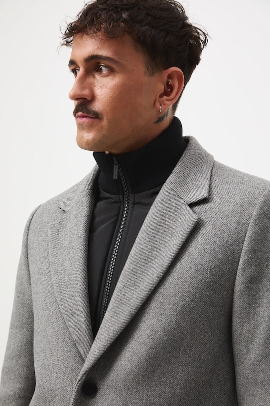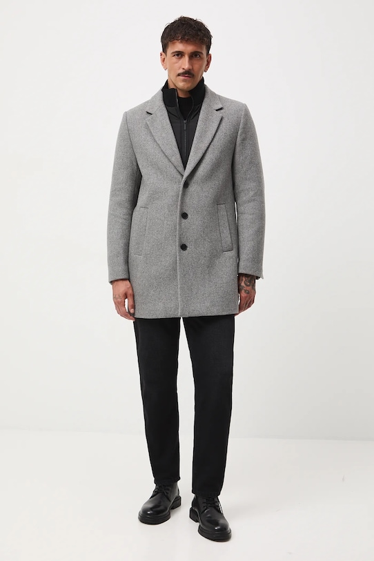 Пальто из коллекции Medicine. Это пальто с лёгким утеплителем изготовлено из смесовой шерсти. - Простой дизайн. - Длинный рукав. - Классические лацканы. - В плечах вшиты подкладки. - Однобортный пиджак с застежкой на пуговицы. - Модель на подкладке. - Застежка-молния. - Накладные карманы. - Внутренний карман. - Легкоутепленная модель с подкладкой. - Меланжевая ткань с добавлением шерсти. - Длина рукава: 66,5 см. - Длина: 88,5 см. - Ширина груди: 57 см. - Ширина плеч: 46 см. - Размеры указаны для размера: M.