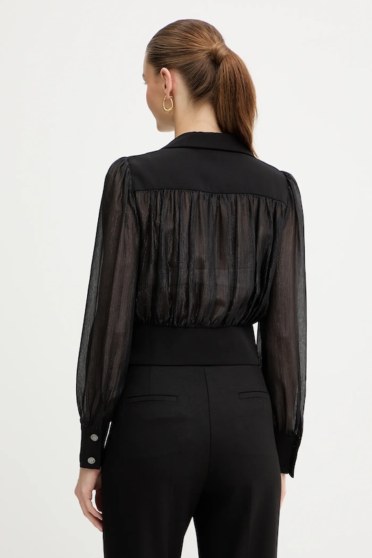 Эта блузка из коллекции Morgan выполнена из прозрачного материала с воротником. Материал эффектный, с металлизированной нитью. - Острый вырез с воротником. - Длинный рукав. - Удобная застежка-молния сбоку позволяет легко надевать и снимать. - Декоративные пуговицы. - Мягкие манжеты с застежкой на пуговицы. - Модель изготовлена из прозрачного материала. - Тонкий материал. - Длина рукава: 61 см. - Длина: 50 см. - Ширина под мышками: 42 см. - Размеры указаны для размера: 36.