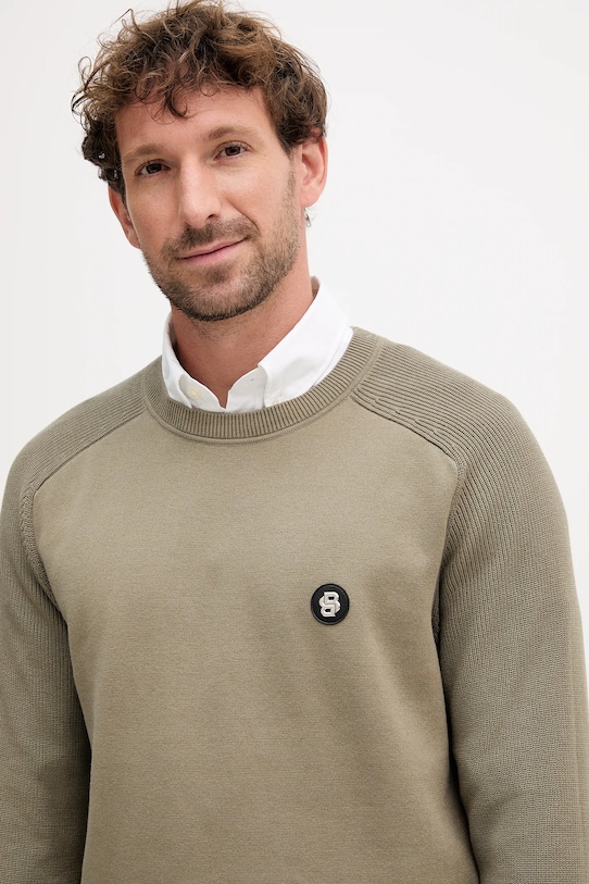 Этот свитер из коллекции BOSS выполнен из тонкого, эластичного трикотажа. Модель выполнена из исключительно комфортного и дышащего материала, идеально подходящего для теплого времени года. - Простой дизайн, не стесняющий движений. - Рукава реглан благодаря своей конструкции обеспечивают большую свободу движений. - Классический круглый вырез. - Рукава и нижний край отделаны удобными эластичными манжетами. - Длина рукава (от горловины): 77 см. - Длина: 69 см. - Ширина под мышками: 59 см. - Размеры указаны для размера: M.