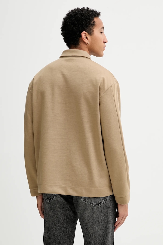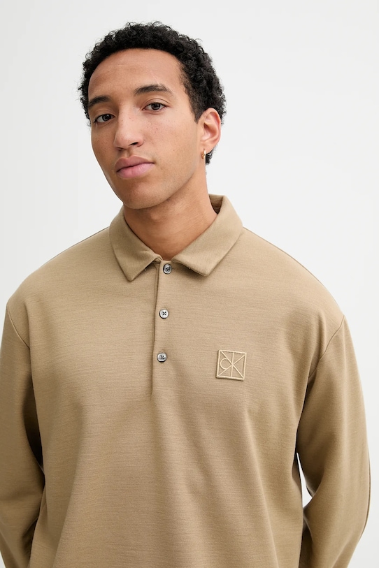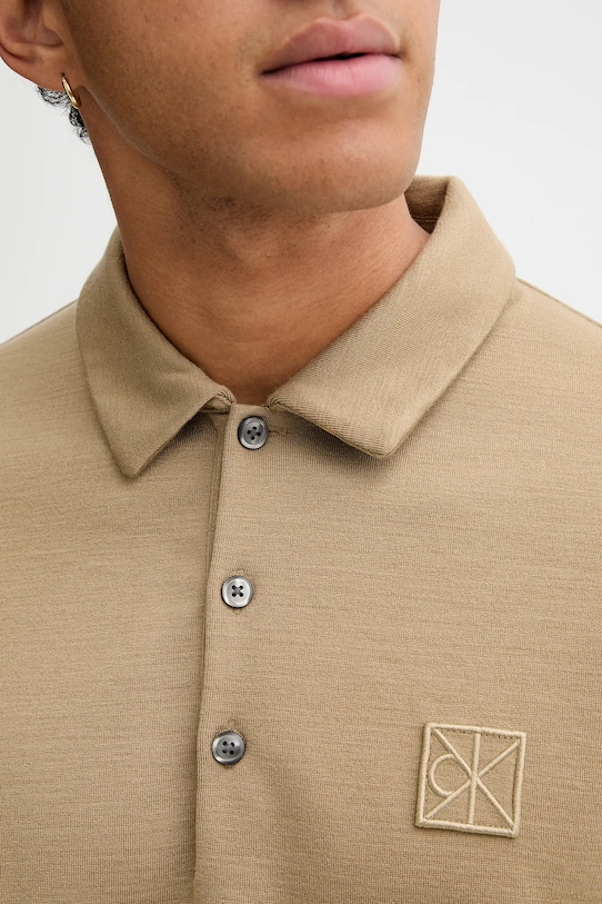 Эта лонгсливовая кофта Calvin Klein выполнена из гладкого, слегка эластичного трикотажа. Высокие терморегулирующие свойства шерсти помогают согреться в холод и охладиться в жару. - Свободный крой. - Застежка на короткие пуговицы обеспечивает эффективную вентиляцию и легкость надевания и снимания. - Модель с мягким воротником. - Рукава отделаны ребристыми манжетами. - Крой рукава со спущенной линией плеча не ограничивает подвижность. - Длина рукава (от воротника): 84 см. - Длина: 70 см. - Ширина под мышками: 64 см. - Размеры указаны для размера: M.