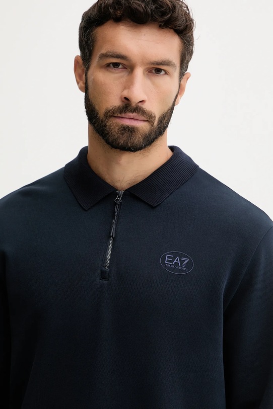 Эта толстовка из коллекции EA7 Emporio Armani выполнена из тонкой эластичной ткани. Модель выполнена из исключительно комфортного, дышащего хлопкового материала. - Свободный крой, обеспечивающий полную свободу движений. - Модель с воротником. - Короткая застежка-молния обеспечивает эффективную вентиляцию и легкость надевания и снимания. - Длинные рукава с удобными эластичными манжетами. - Крой рукава со спущенной линией плеча не ограничивает подвижность. - Графический логотип бренда спереди. - Длина рукава (от воротника): 88 см. - Длина: 76 см. - Ширина под мышками: 60 см. - Размеры указаны для размера: M.