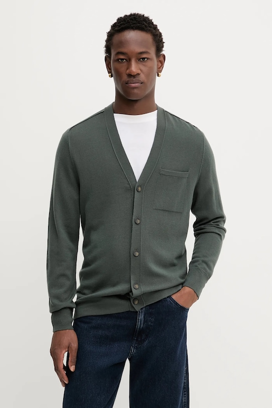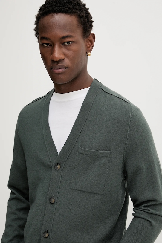 Этот кардиган из коллекции Marc O'Polo выполнен из тонкого эластичного трикотажа. Высокие терморегулирующие свойства шерсти позволяют согреться в холод и охладиться в жару. - Этот продукт сертифицирован по стандарту ответственного производства шерсти (RWS). Материал содержит шерсть, полученную с ферм, имеющих независимую сертификацию на соответствие требованиям к благополучию животных и землепользованию. - Обычная посадка. - Застежка на пуговицы. - Нагрудный карман. - Длина рукава: 64 см. - Длина: 67 см. - Ширина под мышками: 54 см. - Размеры указаны для размера: M.