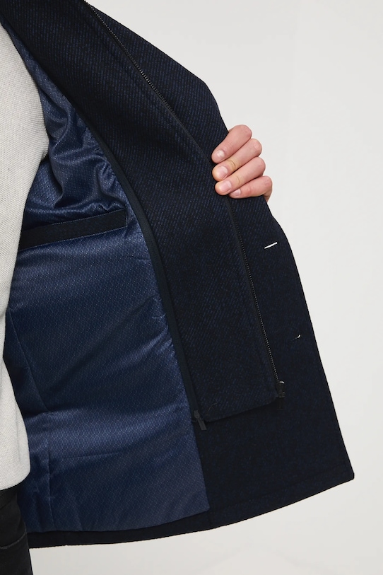 Двубортное пальто из коллекции «Medicine». С лёгкой подкладкой, из шерсти. - Простой дизайн. - Модель со съемной подкладкой. - Застежка на молнию и пуговицы. - Классические лацканы. - Вырез горловины отделан ребристой отделкой. - Два прорезных боковых кармана на молнии. - Внутренний карман. - Разрез сзади. - Легкоутепленная модель с подкладкой. - Меланжевый материал. - Длина рукава: 67,5 см. - Длина: 80 см. - Ширина груди: 58,5 см. - Ширина плеч: 45,5 см. - Размеры указаны для размера: M.